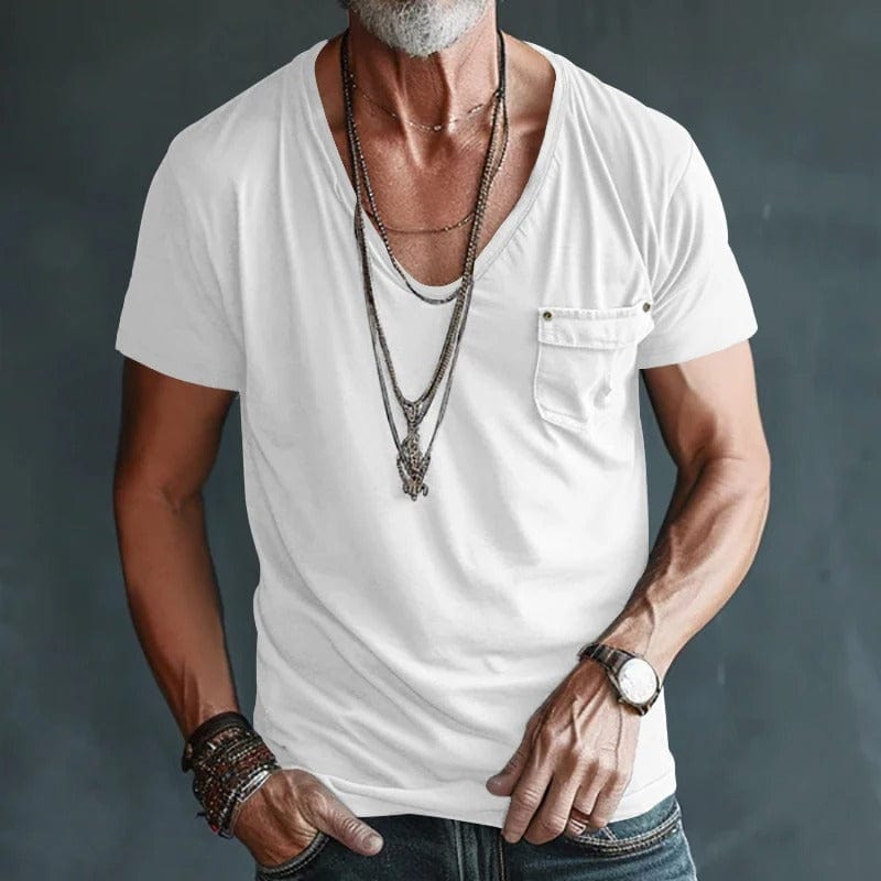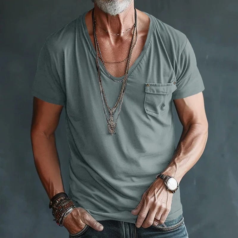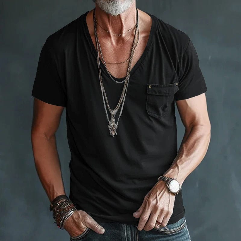 Effortlessly stylish with a relaxed neckline and raw-edge pocket.